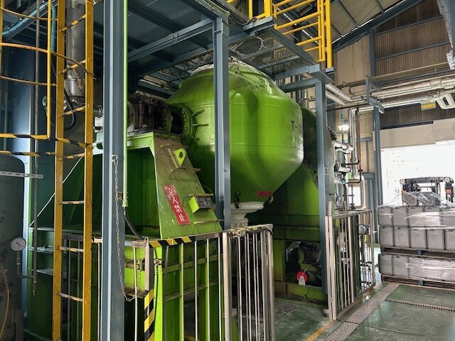 - 防爆型Tiライニング製の遠心分離機につき、有機溶剤や酸性物質の固液分離が可能です。