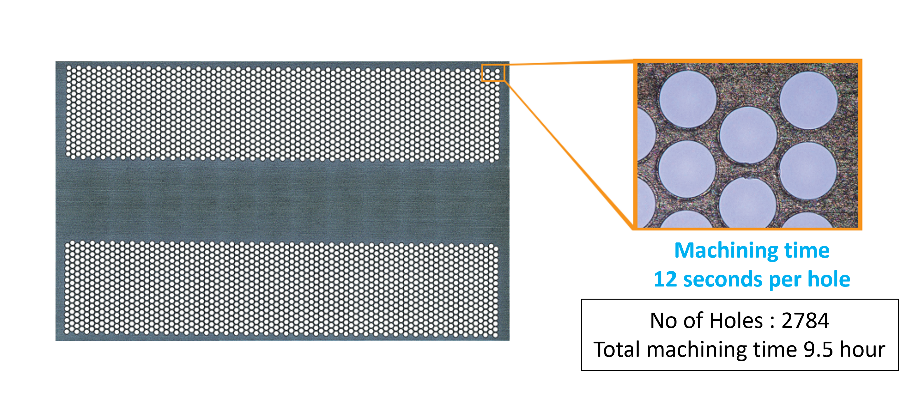 Hole diameter Φ0.02mm、Wall thickness 5µm、Plate thickness 0.2mm、No of holes 9×9